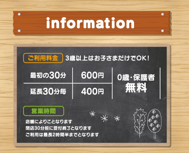 と非常にリーズナブルなお値段です。スキッズガーデン 羽生イオン店はお財布にもやさしいです。